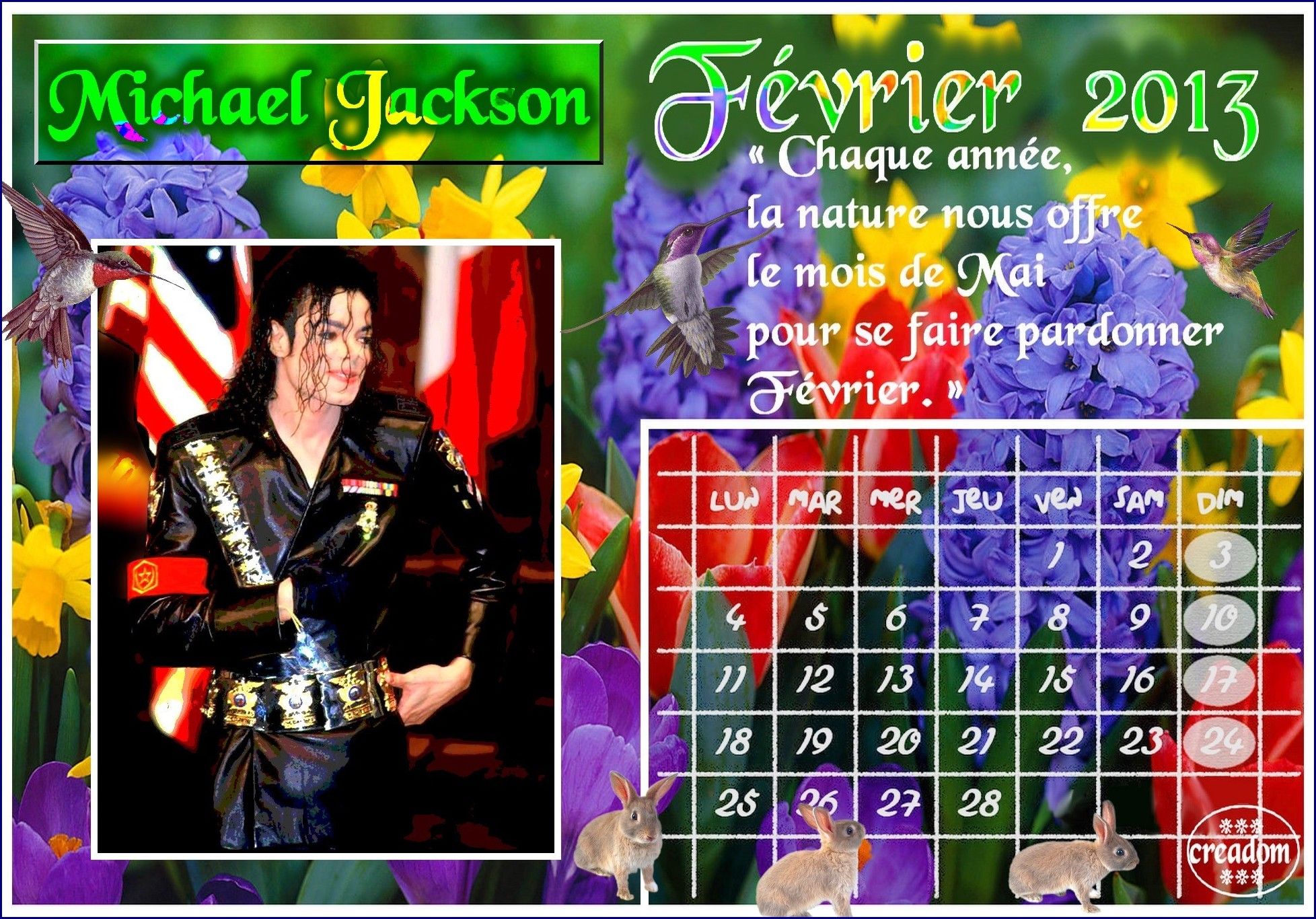 CALENDRIER FEVRIER 2013 MICHAEL JACKSON